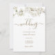 Bonito de boda floral con una delicada flor de primavera que enmarca los detalles de su boda con elegantes letras doradas. Personalice los detalles de su evento especial. El reverso presenta pétalos de flores blancas dispersos. Diseñado por Thisisnotme©
