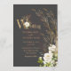 Fabuloso spray floral blanco con hojas de oro sobre un fondo de color beige afilado con toques rojos en el medio para hacer esta invitación sofisticada y moda. El fondo rústico oscuro, marrón y rojo, es magnífico. Hermoso para cualquier temporada.