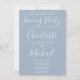 Elegante invitación a fiesta boda con firma azul polvorienta con nombres de estilo, esta elegante invitación a la boda puede ser personalizada con su información en letras de moda. Diseñado por Thisisnotme©