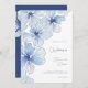 Invitación a la boda con bonitas flores de color azul con contornos plateados, elegantes flores florales de color azul claro suave, diseño floral de primavera o verano de color pastel, composición floral romántica de flores silvestres. acuarela botánica. Elegancia flor botánica Invitación a la boda. Elegante Colección De Flores Azules.