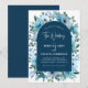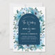 Elegante primavera polvorienta flores azules blancas invitación a la boda. Celebra tu amor con esta invitación a la boda de primavera personalizada, con un diseño floral azul y blanco polvoriento y atemporal. Delicadas flores acuáticas y suaves tonos azules crean un ambiente romántico y sofisticado, perfecto para una boda de primavera o jardín. Establezca el tono de su día especial con una invitación muy bien diseñada que refleje su estilo.