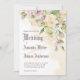 Elegante invitación a la boda de flores crema pastel vintage, antiguo guión de caligrafía inglesa con flores vintage con QR RSVP al fondo.