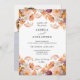 Celebra tu amor con esta elegante invitación a la boda de las flores de otoño, que presenta un ilustracion botánico acuático de florales floridas en tonos suaves y otoñales. En la parte trasera hay espacio para tomar una foto de la pareja, lo que la convierte en una mezcla perfecta de belleza estacional y encanto personal.