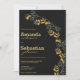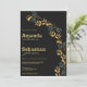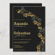 Invitación Elegante boda de follaje verde cian-oro negro