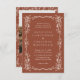 Presenta tu día inolvidable con nuestras hermosas invitaciones a la Boda Fotográfica Victoriana Terracota Vintage. Con el acento de un naranja quemado y una huella beige, estas invitaciones le aportan un encanto floral vintage al alcance de la mano. Diseñada con una estética atemporal y clásica, esta suite de papelería boda encantará a sus huéspedes desde el momento en que abran el sobre. Una paleta clásica de terracota contrasta maravillosamente con los estampados florales vintage, creando un escenario atractivo para los detalles de tu día especial. Cada una de estas invitaciones está bellamente diseñada y meticulosamente elaborada, asegurando una invitación extraordinaria que repite el amor y la alegría de su próximo sindicato. Con un diseño clásico que trasciende las tendencias, se trata de una invitación que tanto tú como tus invitados valorarán en los años venideros. Añade tu foto de compromiso favorita a la parte posterior para un toque personal.