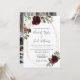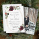 Esta invitación nupcial para Navidades es perfecta para un elegante boda de vacaciones. El diseño presenta hermosas acuarelas blancas y borgoñosas con pino, bayas sagradas y vegetación de eucalipto. Este es un esquema de color perfecto para una boda de invierno. Haga que esta invitación sea suya incluyendo sus nombres y todos los detalles de su boda. Añade tu foto al fondo. Para una mayor personalización, utilice la herramienta de diseño avanzada para modificar esta plantilla.