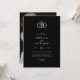 Moda romántica Simple Caligrafía de lujo en blanco y negro Corazón de anillos empapados Monograma Invitación a la boda fotográfica.