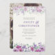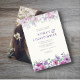 Elegante invitación de boda moderna con bordes florales de acuarela en tonos violeta y lavanda. Foto de borde a borde completa en la parte posterior. Ideal para bodas modernas, bohadas y de temática rústica, de verano y otoño. Tipografía moderna del serif. Composición clásica. Totalmente personalizable. Póngase en contacto para obtener ayuda para personalizar o personalizar sus deseos.