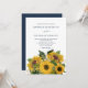 Elegante Navy Blue Sunflowers Invitación a la boda
