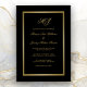 Invitación Elegante Boda de guiones de Monograma de Oro Negro