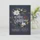 Invitación Elegante Boda de guirnaldas florales en blanco neg