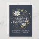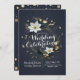 Invitación Elegante Boda de guirnaldas florales en blanco neg