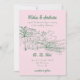 Elegante "Sencillo y simple invitación a la boda de la iglesia de la Iglesia Católica", iglesia dibujada a mano con entradas en arco, palmera y mesas al aire libre bajo luces de cuerda, sobre un suave fondo rosa pastel. Si necesitas otro producto o personalización que coincida, por favor contáctame.