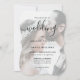Elegantes invitaciones para bodas fotográficas con un moderno tipo de letra de guión. Personalice fácilmente estas invitaciones de boda fotográficas modernas con su imagen y detalles bodas. Elementos coincidentes disponibles.