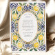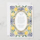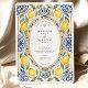 Invitación Elegante Boda de limón mediterráneo y mosaico azul