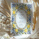 Traslade a sus huéspedes a una villa italiana cubierta de sol con esta impresionante invitación a una boda. Inspirado en el encanto de la costa de Amalfi, este diseño presenta un exquisito borde acuático pintado a mano. Los limones amarillos vibrantes y las hojas verdes exuberantes se tejen artísticamente en un intrincado patrón azul y blanco que recuerda a los azulejos clásicos mediterráneos, italianos o españoles. Los ricos tonos cobalto, verde azulado y azul polvoriento crean un impresionante contraste con los cítricos brillantes. Los detalles de su boda se muestran de forma elegante en un óvalo central, enmarcado por una encantadora línea de guiones de color terracota. Esta invitación es perfecta para una boda de destino, una vibrante celebración de verano, o cualquier pareja que quiera capturar el espíritu del romance europeo.