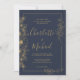 Invitación Elegante Boda de marco floral azul y dorado de la