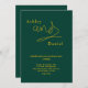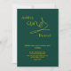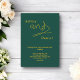 Esta elegante invitación a la boda de oro y verde es perfecta para un boda moderno. el diseño es sencillo, con una elegante caligrafía de oro sobre un fondo verde.
