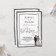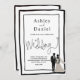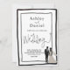 Esta elegante invitación a la boda en blanco y negro es perfecta para un boda moderno. El diseño es sencillo y cuenta con una elegante caligrafía negra, un marco negro de moda y un ilustracion de novias y novios sobre un fondo blanco y limpio. La tarjeta de invitación incluye los detalles del boda en la parte posterior en lugar de pagar por una tarjeta separada.