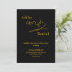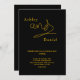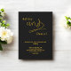 Esta elegante invitación a celebrar bodas en negro y oro es perfecta para un boda moderno. el diseño es sencillo y elegante, con una caligrafía dorada sobre un fondo negro.