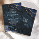 Esta elegante y lujosa invitación a la boda incluye una moda de fondo de piedras preciosas color azul marino y oro agate, un texto blanco coordinado y un elegante monograma de escritura en la parte posterior. Para productos que coincidan, por favor visite la colección, o envíeme un mensaje a través de Zazzle Chat.