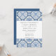Elegante invitación a la boda de mosaicos griegos azules para la novia y el novio modernos.