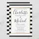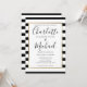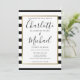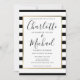 Elegante invitación de boda a rayas blancas y negras con nombres de estilo de firma, esta elegante invitación de boda puede ser personalizada con su información en letras de moda en un marco dorado. Diseñado por Thisisnotme©