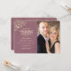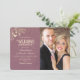 Lujo, elegante invitación de boda morada, con foto personalizada de la pareja y encaje floral dorado vintage.
