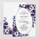 Invite a sus amigos y seres queridos a celebrar su unión con esta elegante invitación a una boda oval con flores moradas. El texto del personalizable le permite añadir sin esfuerzo los nombres de la novia y del novio, la fecha del boda y los detalles necesarios de su celebración. Hay una variedad de tipos de papel y estilos de esquina disponibles para sus invitaciones únicas, junto con la opción de descargar si prefiere un formato digital.