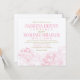 Elegante y romántico diseño de invitación a la boda de peones en tonos rosa y champán dorado. Formato de tarjeta cuadrada.
