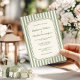 Con esta elegante invitación le traerá un toque refinado y actual a su papelería boda. Las franjas verticales de color verde sabio suave enmarcan una frontera vintage hecha a mano, creando una estética tranquila y lujosa de dinero viejo que es tendencia para celebraciones de jardines y clubes de campo. Siéntase libre de editar toda la redacción y personalizar el color del fondo para que se ajuste a su tema.