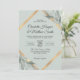 Elegantes invitaciones de boda con verde profundo, hojas de color sabio, hojas, ramas, follaje - tema botánico. Color del fondo: sabio polvoriento plateado, verde, gris pizarra (gris). Marco falso de Relieve metalizado dorado en forma de diamante. Perfecto para cualquier época del año o tema boda. Delicado diseño en hojas pintadas de acuarela. El dorso de la tarjeta tiene monogramas de novia y novio.