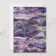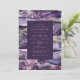 Un elegante diseño abstracto en tonos morados y dorados de tinta alcohólica proporciona el fondo del texto lila en un rectángulo morado. El diseño de tinta se repite en la parte posterior de la tarjeta.