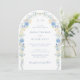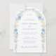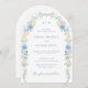 Esta invitación a la boda presenta un marco floral con forma de arco con flores elegantes en diferentes tonalidades de letra azul y manuscrita. Con su sofisticado marco floral y su atención por los detalles, esta invitación marcará el tono para una boda memorable y elegante.
