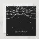 Diseño elegante de boda "Save The Date" con efecto de cuerda negra brillante y clásico con cielo nocturno y estrellas en fondo negro, y nombres y fecha personalizados. Impresiona a familiares y amigos con este diseño moderno y elegante. ¡Totalmente personalizable! Fácil de usar y personalizar. ¡Ordena hoy mismo!