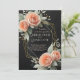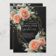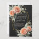 Los colores elegantes y el diseño geométrico hacen que esta invitación sea impresionante. Este diseño presenta un espectacular fondo negro, un bonito bosquejo floral de línea botánica dibujado y una tipografía personalizado con un borde geométrico en la parte delantera. El reverso cuenta con un bonito tapiz floral.