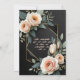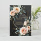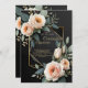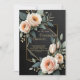 Los colores elegantes y el diseño geométrico hacen que esta invitación sea impresionante. Este diseño presenta un espectacular fondo negro, un bonito bosquejo floral de línea botánica dibujado y una tipografía personalizado con un borde geométrico en la parte delantera. El reverso cuenta con un bonito tapiz floral.