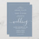 Minimalistas, pero elegantes, polvorientas invitaciones nupciales azules con un estilo de escritura moderno. Elementos coincidentes disponibles.