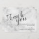 Elegante Boda elegante de mármol blanco Gracias tarjeta que incluye título en letra de escritura moderna gris con texto en sans modernos grises serif fuente sobre fondo de mármol blanco.