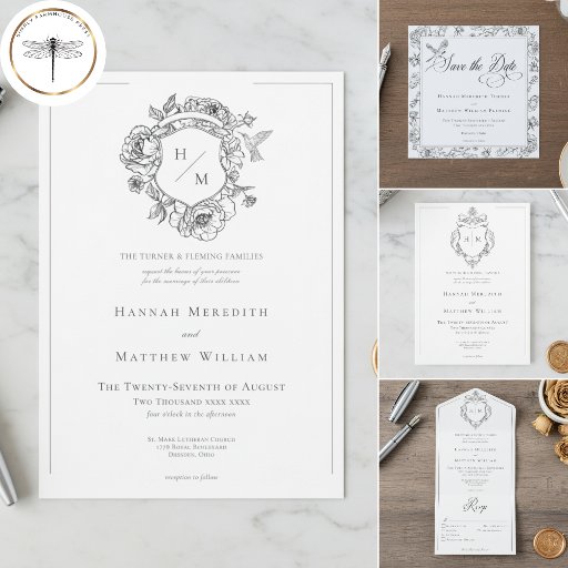 Elegant Black Chinoiserie Bird & Crest WeddingDiseñado por Kathe Santillo