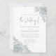 Fije el tono de su día especial con estas elegantes invitaciones azul boda floral, con suaves flores azules polvorientas de color agua y un refinado monograma de novia y novio. Diseñado con un diseño sencillo y minimalista, estas bodas formales combinan elementos clásicos y tradicionales para un aspecto atemporal. Perfecto para parejas que buscan una manera elegante y sofisticada de invitar a los invitados a su inolvidable celebración.