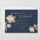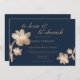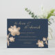 Invitación Elegante Boda floral de guion dorado de moda azul