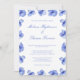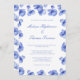 Invite a sus huéspedes con una temática de jardín floral de primavera hidrangea azul con este bonito diseño. Esta invitación se coordina con otros elementos de la colección de Bodas Blue Hydrangea.