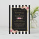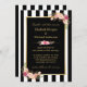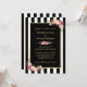 Invitación Elegante Boda floral de rayas blancas negras dorad
