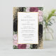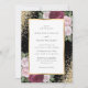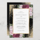 Elegante invitación a bodas florales, negras, borgoñas y rosas, con flores borgoñas y rosas rubias enmarcando los detalles bodas dentro de un marco dorado adornado con confeti dorado. Elementos coincidentes disponibles.
