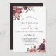 Esta elegante invitación a celebrar bodas con flores en verano es perfecta para un boda moderno. El diseño presenta bonitos rosas de burdeos de color burdeos dibujados a mano, cuidadosamente dispuestos en bonitos marcos y ramos.