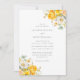 Elegante invitación a una boda floral de color amarillo y melocotón con un ramo de flores y vegetación amarillas y melocotones. Diseño de tarjeta perfecto para invitar a sus invitados a su fiesta de bodas de color amarillo y melocotón.