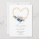 Invitación Elegante Boda floral del corazón del oro azul