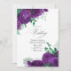Invitación Elegante Boda floral morado y verde código QR
