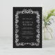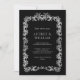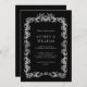 Eleva tu suite de invitados de boda con esta elegante invitación de boda floral plateada personalizada. Con un marco floral plateado clásico y un texto personalizado con un acento plateado de color sobre fondo negro, esta invitación seguramente hará una declaración. Nuestras invitaciones están impresas en cartón de alta calidad y son totalmente de personalizable. Puede elegir entre una variedad de tipos de letra, colores y acabados para crear una invitación que refleje perfectamente su estilo boda. Ya sea que planee un boda formal o informal, nuestras elegantes invitaciones florales plateadas para una boda son una elección perfecta. ¡Pida el tuyo hoy y marca el tono de tu día especial!